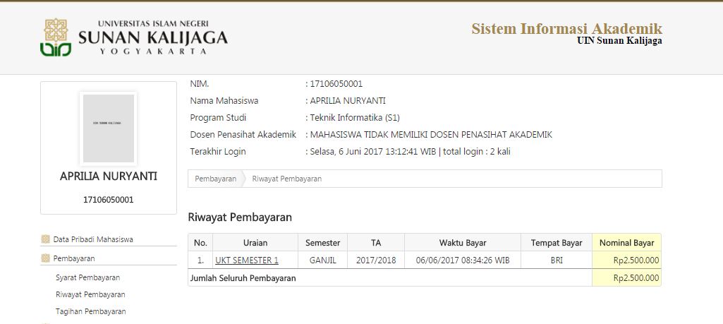 Sehubungan ditemukannya permasalah pada Slip Pembayaran UKT mahasiswa baru UIN Sunan Kalijaga untuk Bank BRI yang tidak mencantumkan NIM mahasiswa yang benar sehingga menimbulkan kesulitan bagi mahasiswa baru untuklogin ke laman akademik.uin-suka.ac.id , maka untuk sementara akses pembayaran UKT mah....
