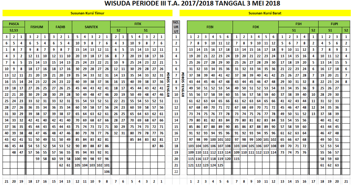 Susunan Kursi Wisuda Periode III T.A. 2017-2018