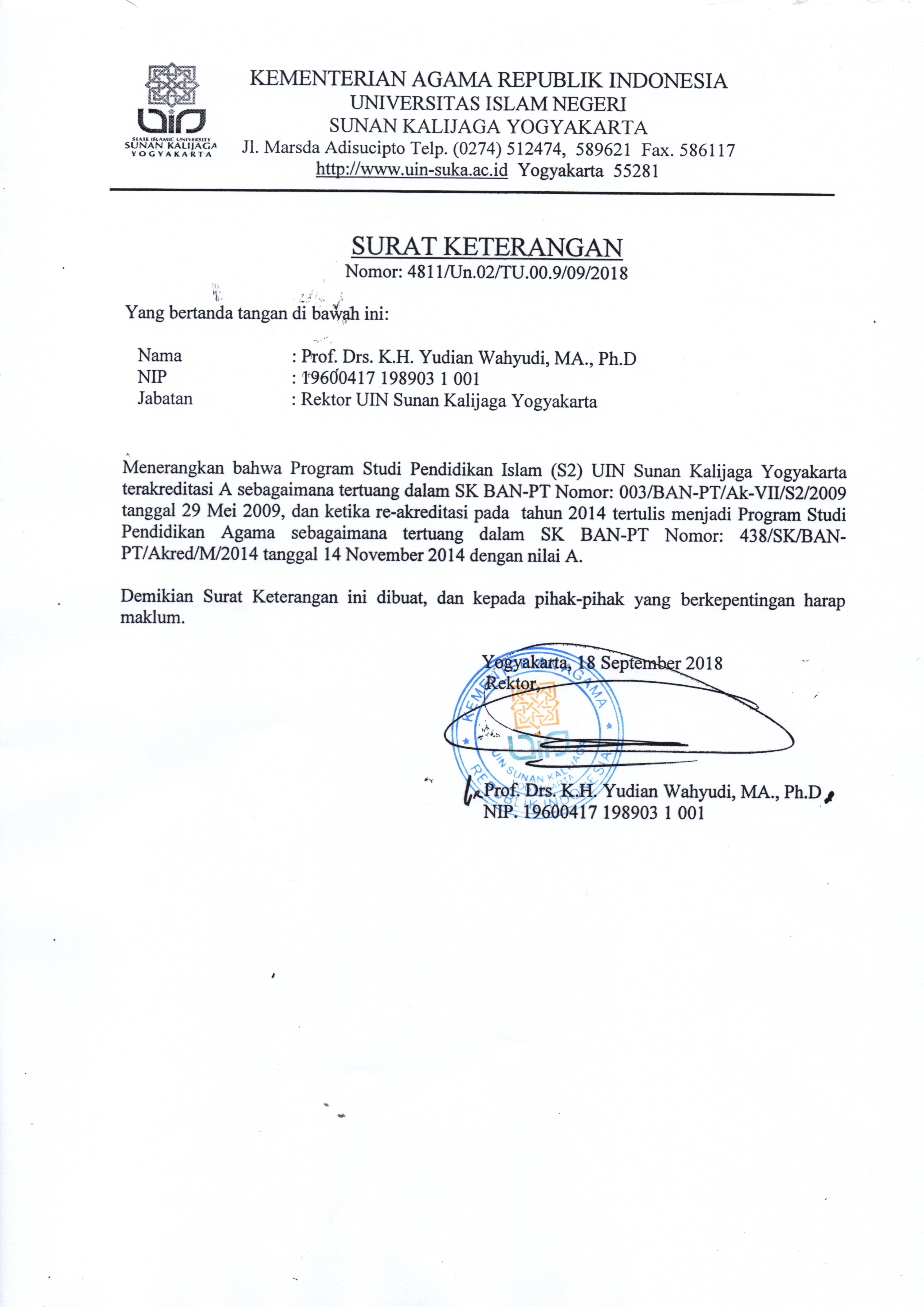 Surat Keterangan Akreditasi BAN-PT Prodi Pendidikan Islam (S2) ...