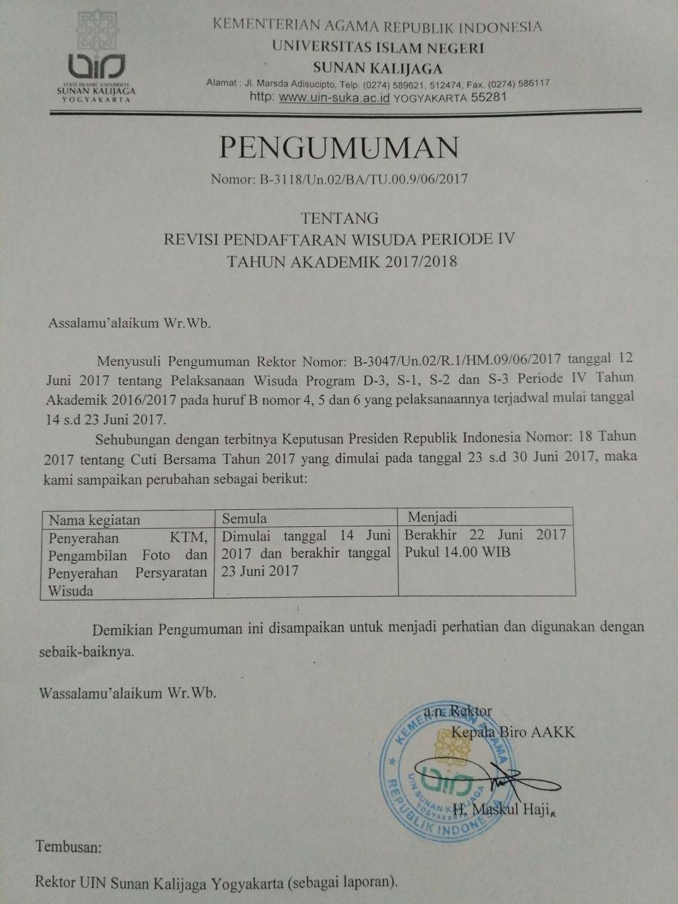 REVISI Jadwal Pendaftaran Wisuda Periode IV TA 2016/2017