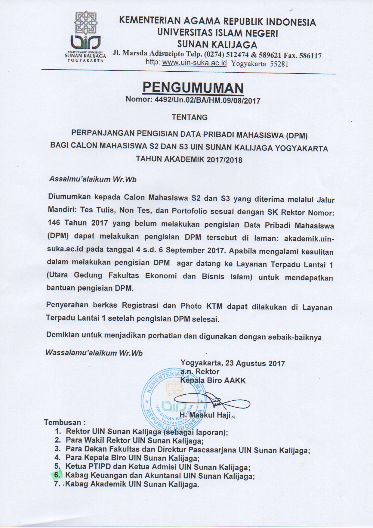 Perubahan Pengumuman Nomor B-3082.1/Un.02/TU.00.3/07/2025 tentang Jadwal dan Prosedur Herregistrasi Mahasiswa S1, S2, dan S3 pada Semester Ganjil Tahun Akademik 2025/2026 UIN Sunan Kalijaga Yogyakarta