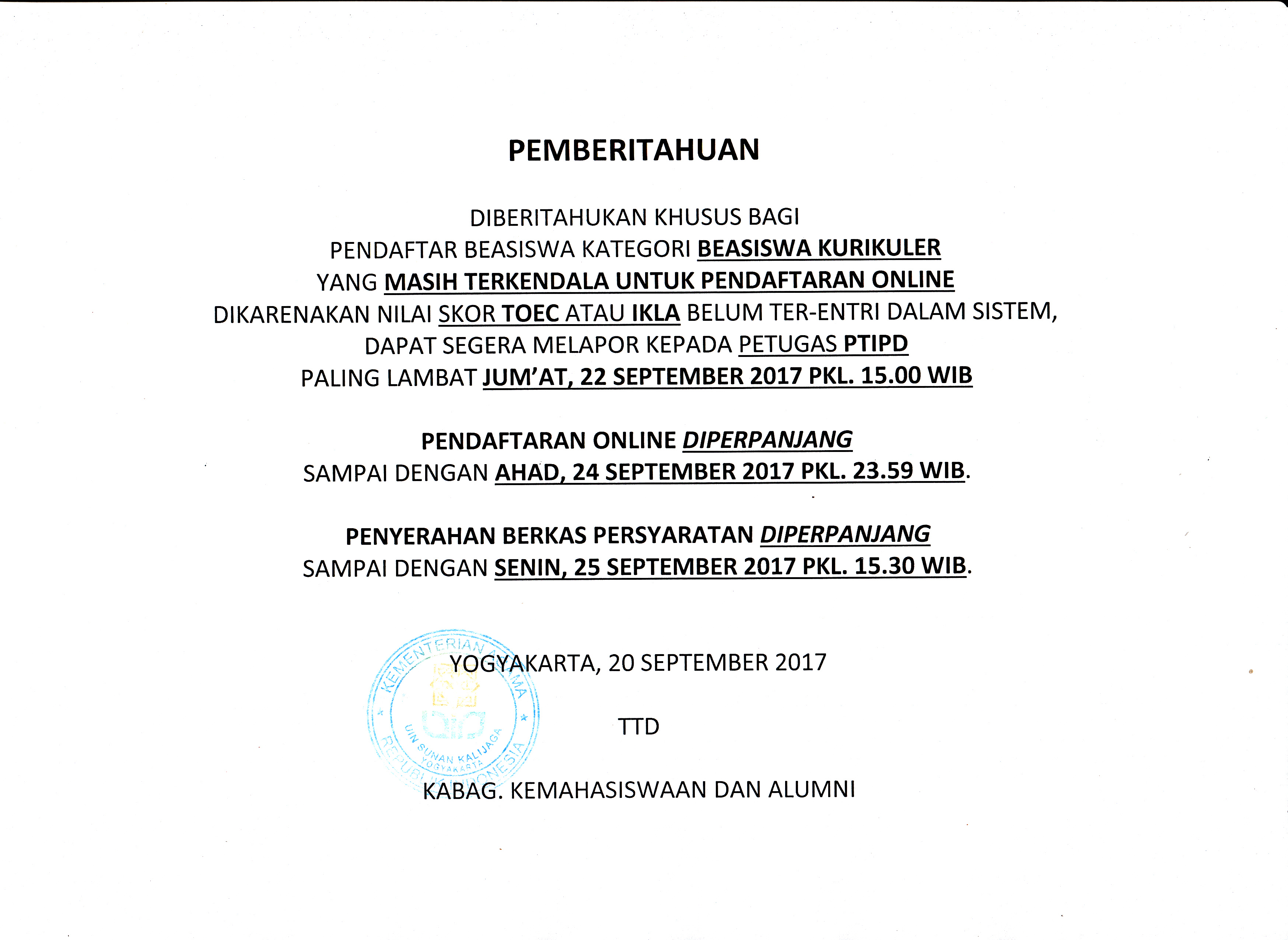 Perpanjangan Pendaftaran Beasiswa Peningkatan Prestasi dan Akademik 2017 ...