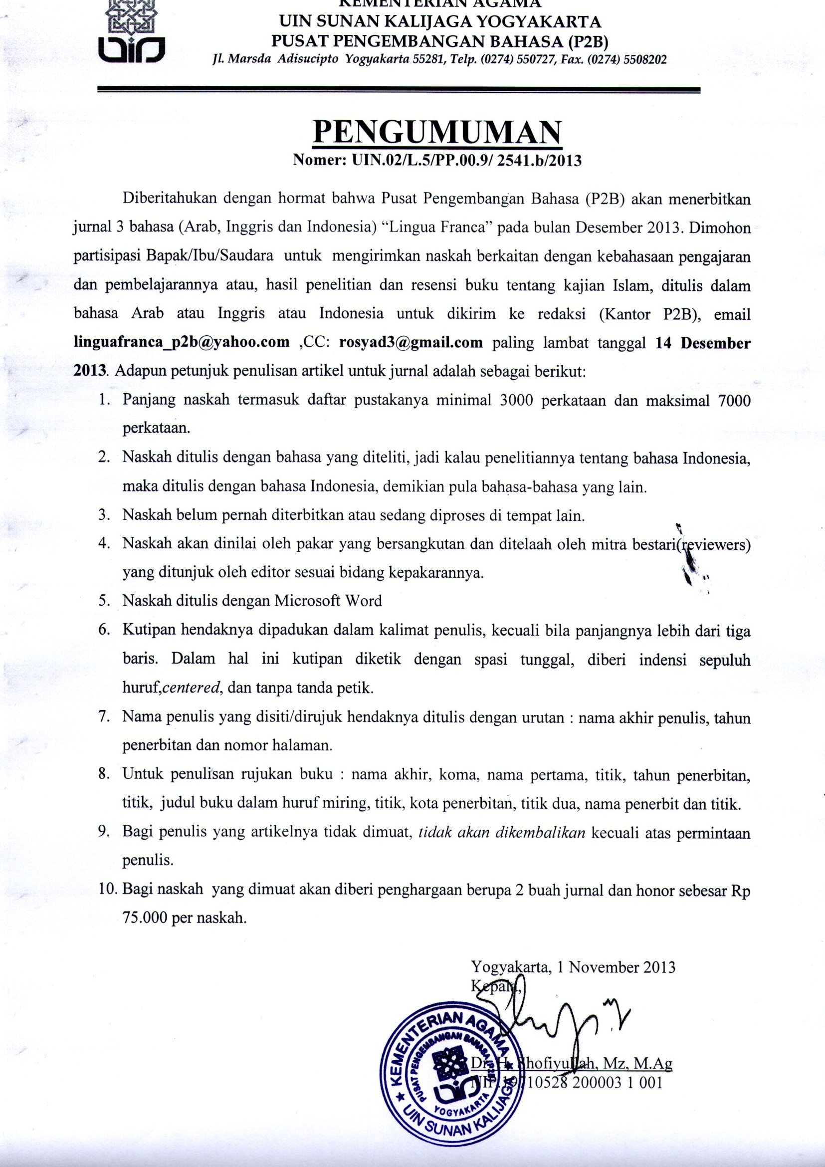 Pengumuman Jurnal Lingua Franca ...
